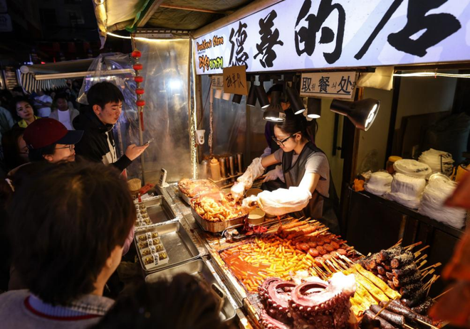 5月2日,游客在沈阳市西塔商圈选购美食 图:新华社