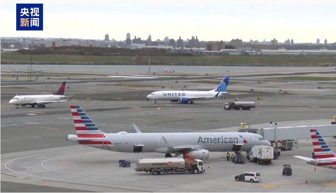 美国纽约肯尼迪国际机场因人员配备问题面临地面停飞 图片来源:央视新闻