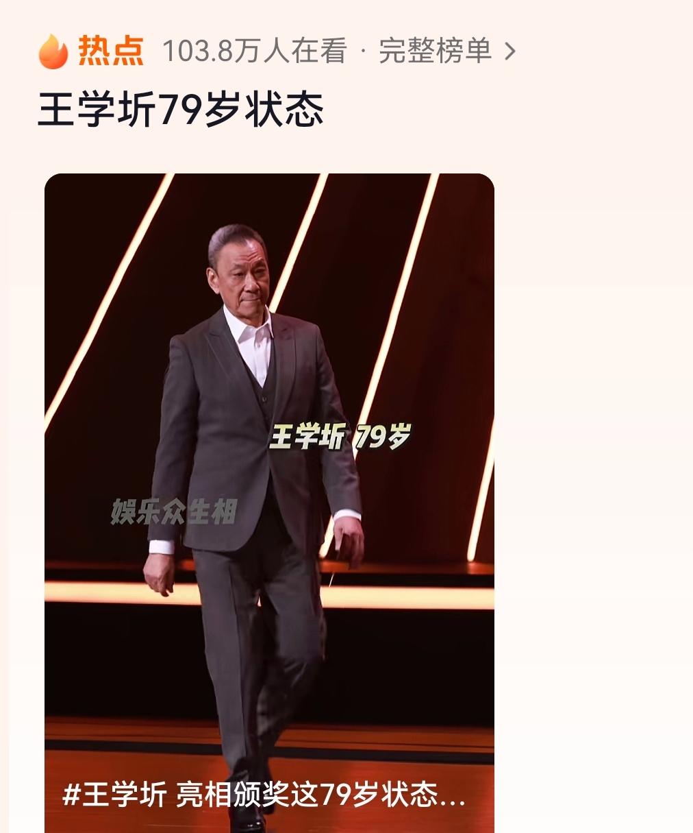 79岁王学圻亮相颁奖典礼,网友:这状态像49岁的