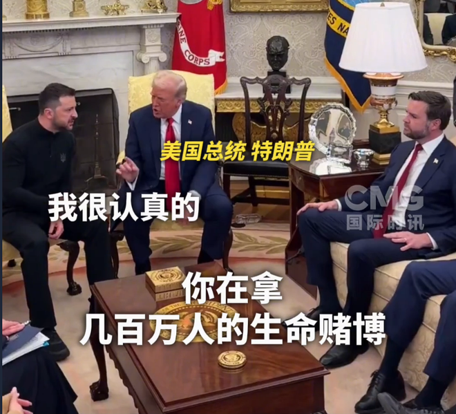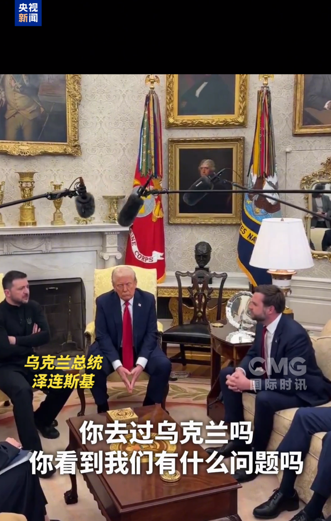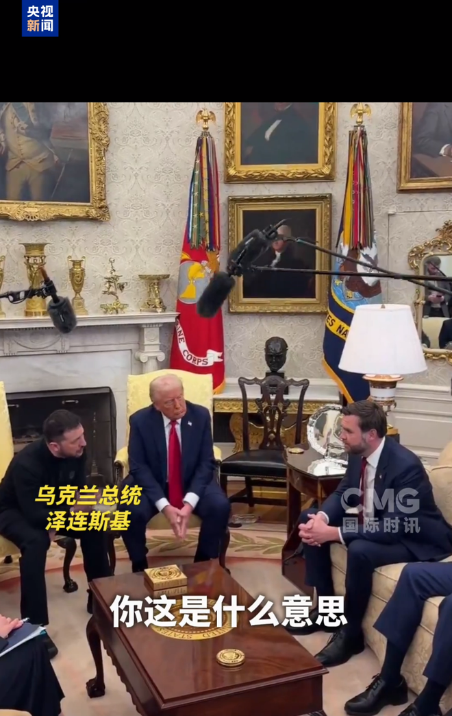 特朗普和泽连斯基争吵画面 央视新闻视频截图