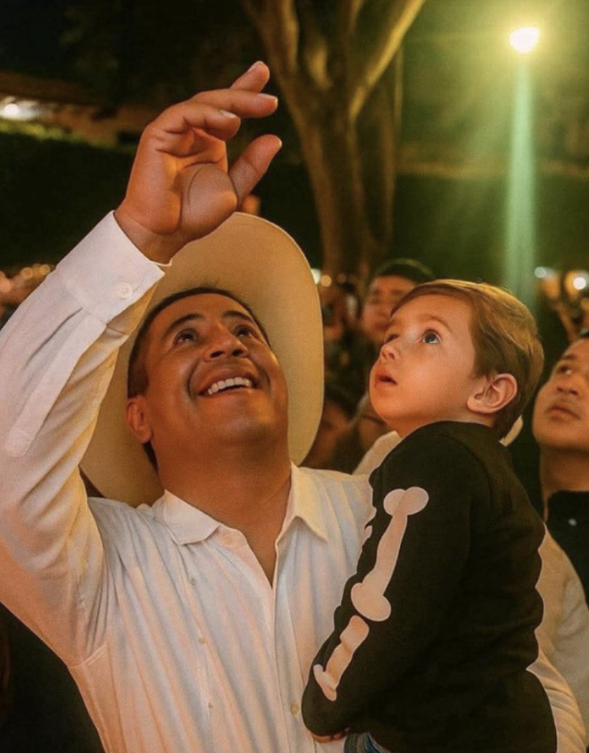 被枪杀前,卡洛斯·曼佐抱着他的幼子出席当地庆祝活动