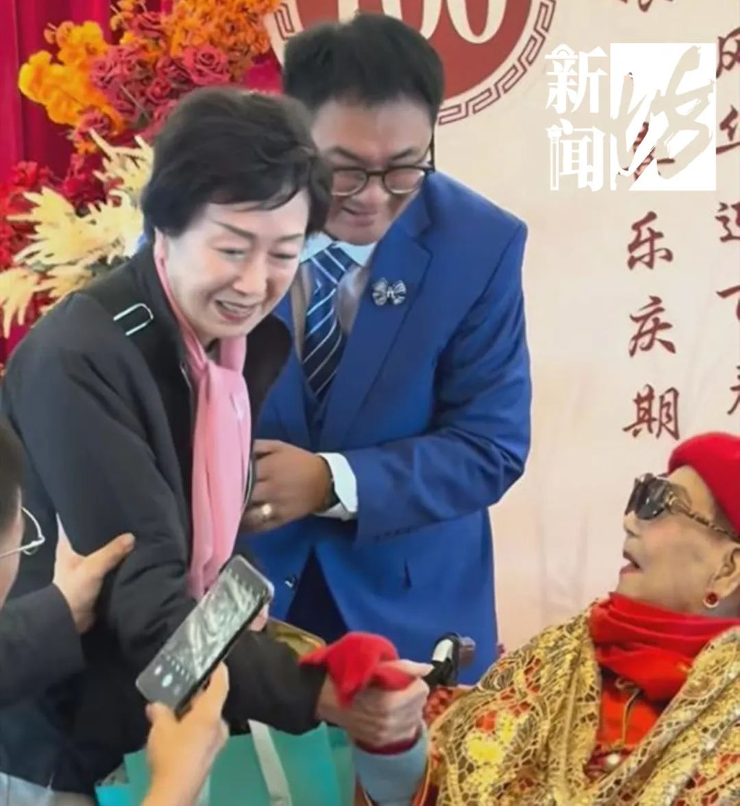 仪式现场温情涌动,民盟代表献花行贺寿礼,致敬艺术前辈;百岁高龄的嫩娘精神矍铄登台,亲手切寿糕,以温暖而富有力量的话语致谢众人关怀,整场仪式满溢温馨与敬意。