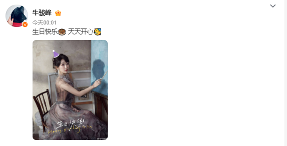 11月6日凌晨,演员牛骏峰凌晨卡点为杨紫庆生:生日快乐 天天开心杨紫火速回复:谢谢我牛哥。是超级无敌长久的朋友啊!此前,... 11月6日凌晨,演员牛骏峰凌晨卡点为杨紫庆生:生日快乐 天天开心