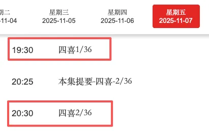 但11月4日,该档期电视剧已经改变为由童瑶、蒋欣、黄明昊主演的女性成长剧《四喜》。