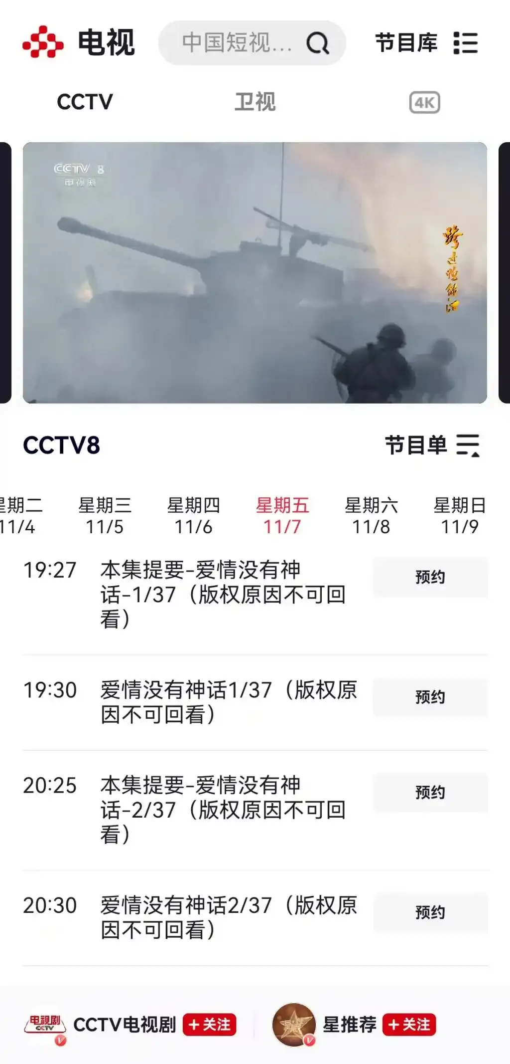 此前,CCTV8的节目单显示:11月7日晚7点半的电视剧为《爱情没有神话》。图据澎湃新闻