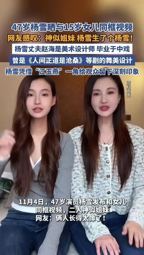 47岁杨雪晒与15岁女儿同框视频,网友直呼:太像了,怎么做到共用一张脸