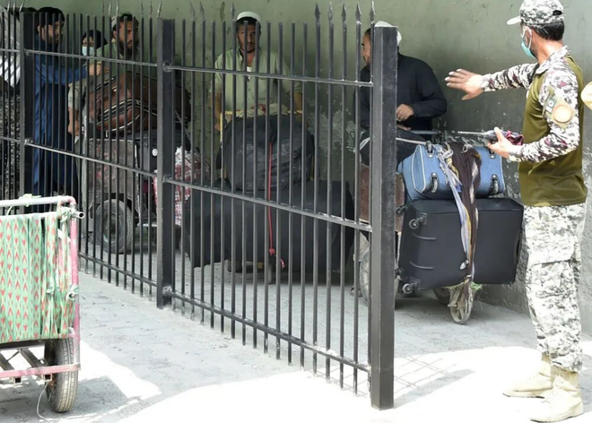 2021年9月5日,人们从巴基斯坦与阿富汗的边境口岸多尔哈姆入境巴基斯坦 图:新华社