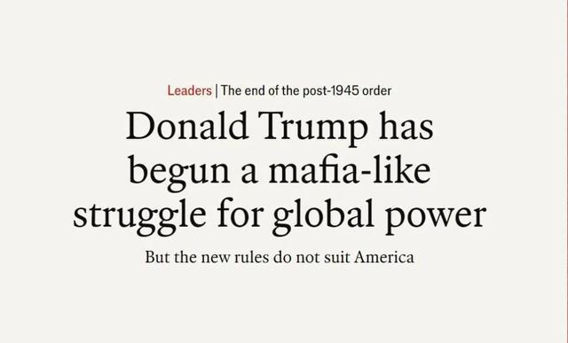 英国《经济学人》网站截图英国《经济学人》网站近期刊文称,美国总统特朗普已经开启一场黑手党式的全球权力争夺。1945年后建... 英国《经济学人》网站截图