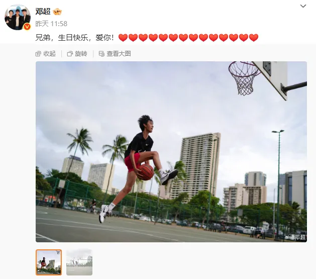 昨日,邓超晒出儿子打篮球的照片为其庆生,他称儿子为“兄弟”。