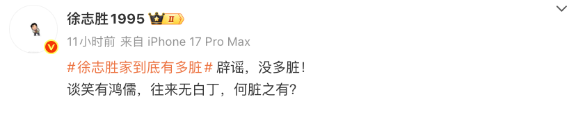 随后,“徐志胜家到底有多脏”的话题引发网友讨论。