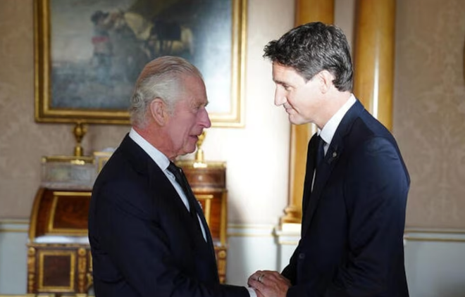 2022年9月,查尔斯三世在伦敦白金汉宫接见加拿大总理特鲁多(图/外媒)