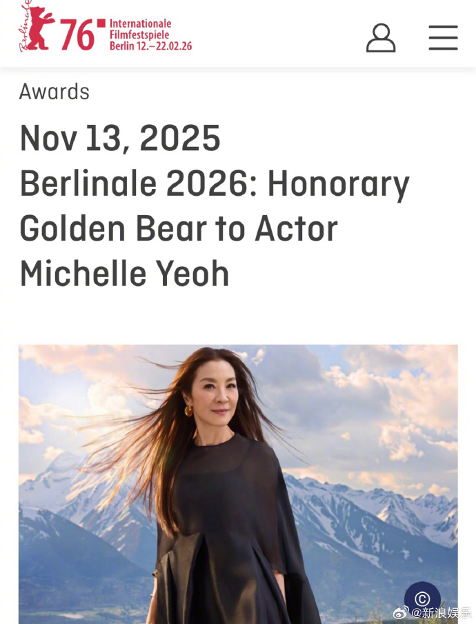 柏林电影节宣布授予杨紫琼终身成就奖荣誉金熊,将于下一届柏林开幕之夜2026年2月12日颁出。据悉,杨紫琼曾担任1999年... 柏林电影节宣布授予杨紫琼终身成就奖荣誉金熊,将于下一届柏林开幕之夜2026年2月12日颁出。