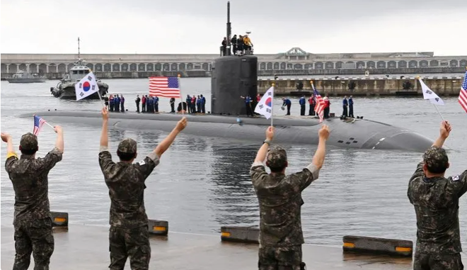 2023年7月,美国核动力潜艇“安纳波利斯”号抵达韩国济州岛海军基地(路透社)