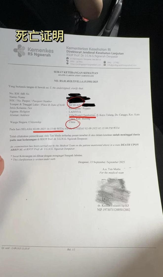 成都女孩巴厘岛身亡,事发前旅社曾用杀虫剂熏蒸床虱,同屋中毒者:医生称或伴有两种中毒