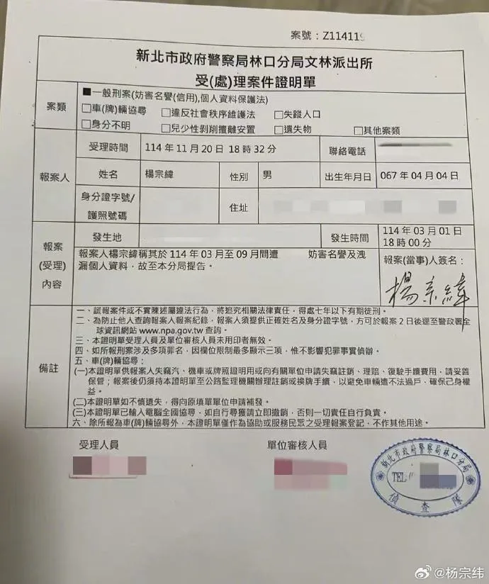 杨宗纬已报警并发文:尊重每个人的选择,相信所有行为都会带来相应的后果;此前因被曝是恶邻上热搜