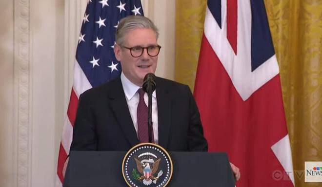 当地时间2月27日,英国首相斯塔默在和特朗普的联合记者会上回答提问 CTV视频截图