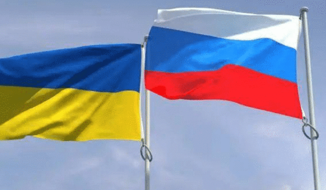 图为俄乌国旗