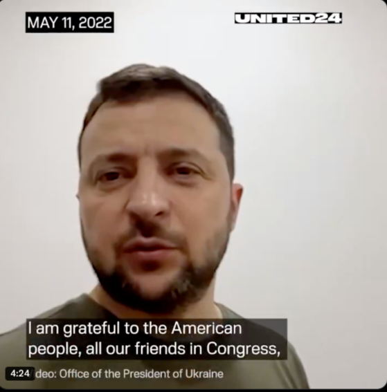 与此同时,另一段有关“泽连斯基感谢美国”的视频也在社交媒体上疯传。该视频合集显示,泽连斯基自2022年2月24日俄乌冲突以来,在讲话中感谢美国,总共感谢了94次。该视频由一名推特用户转发,获得了660万次观看和超过10万个点赞。