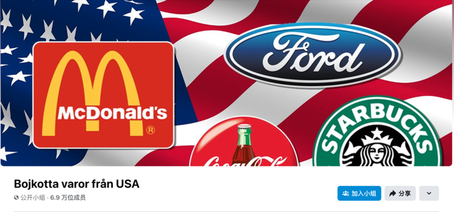 这是号召抵制美国商品的瑞典语群组的“脸书”截图