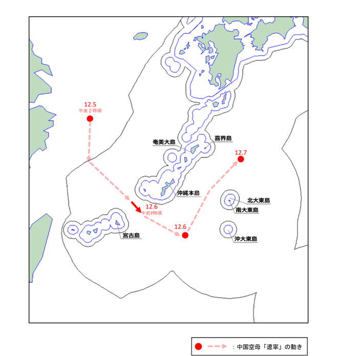 此前12月7日凌晨,日本防卫省发布消息称,中国辽宁舰航母编队舰载机在冲绳本岛东南公海空域对日航空自卫队战机实施雷达照射,日方向中方提出强烈抗议。