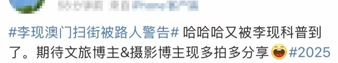 李现澳门街头摄影,被路人警告:照片给我删了,不然报警!善意发文引热议:有被科普到