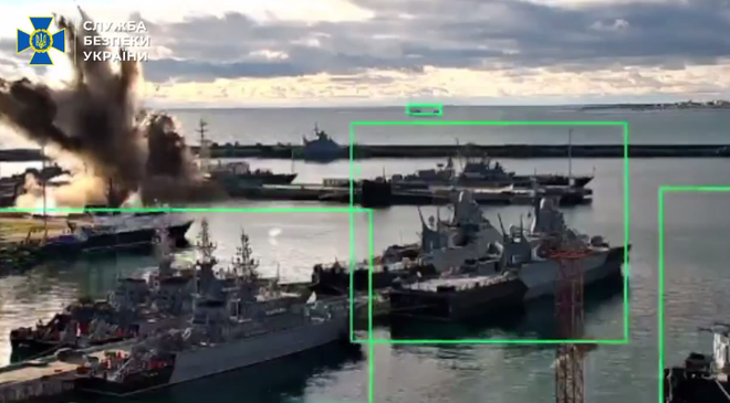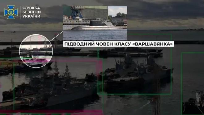乌国家安全局公布的击伤俄“华沙女人”级潜艇视频截图