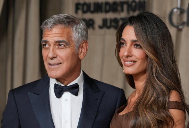 图为乔治·克鲁尼及其妻子