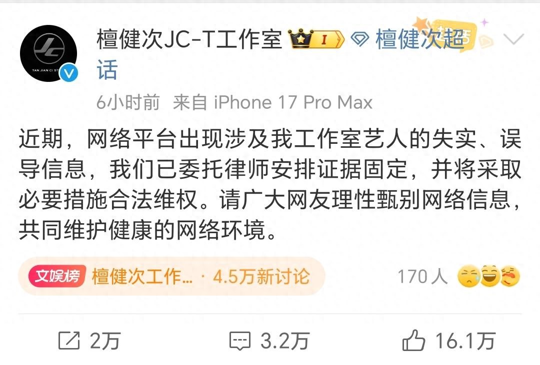 檀健次工作室发文否认