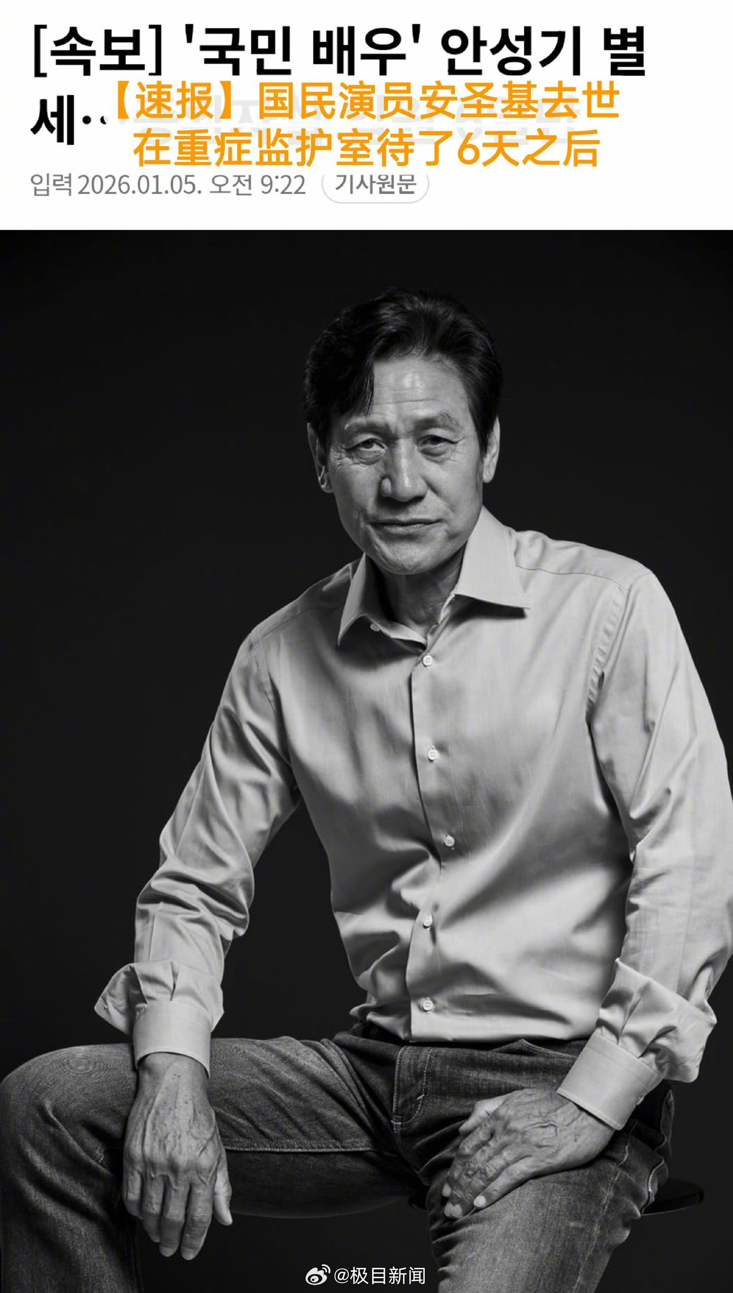 1月5日,经纪公司宣布,与白血病抗争6年的的韩国著名演员安圣基去世,享年74岁。安圣基于12月30日下午进食时发生气道梗... 1月5日,经纪公司宣布,与白血病抗争6年的的韩国著名演员安圣基去世,享年74岁。安圣基于12月30日下午进食时发生气道梗阻,意识丧失后被送往医院急诊室。随后转入重症监护室接受治疗,但最终未能恢复健康。