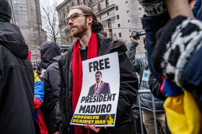 在美国国内,民主、共和两党一些议员说,这是“非法战争”,是美国对外“霸凌”。连日来,抗议者聚集在纽约南区联邦地区法院外,抗议军事干涉委内瑞拉,要求释放马杜罗。