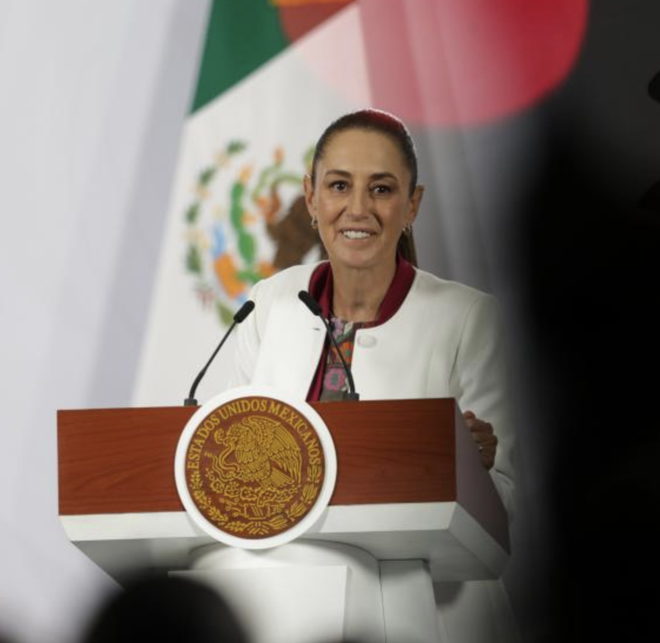 墨西哥总统克劳迪娅·辛鲍姆讲话画面 图据新华社