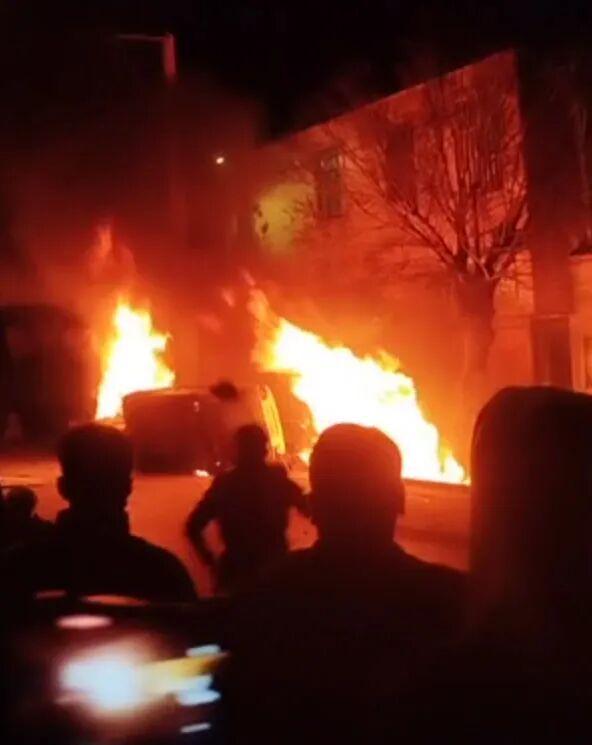 伊朗洛雷斯坦省阿兹纳,示威者在警察局外纵火 视频截图