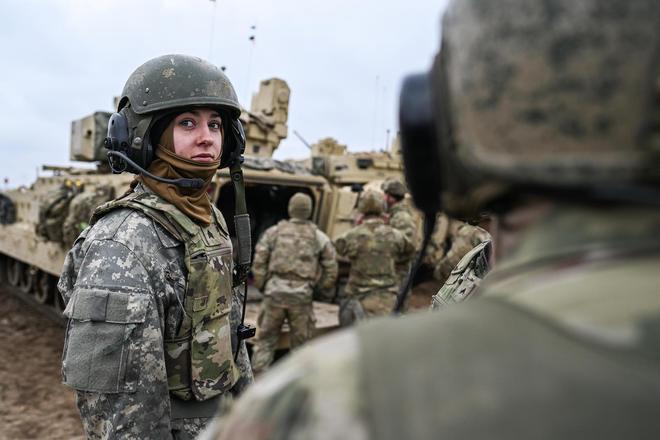 ▲当地时间2025年3月13日,波兰德拉夫斯科波莫尔斯基,一名美国陆军第三旅第一装甲师的女兵在布拉德利战斗车上与她的队员交谈,为即将进行的实弹演习做准备 图据视觉中国