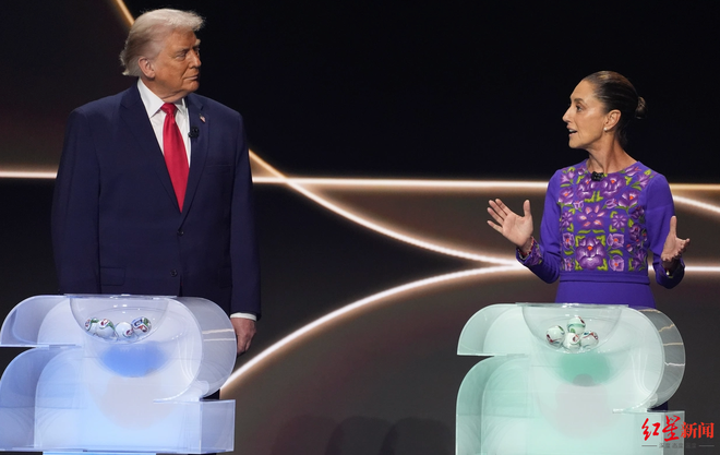 ▲2025年12月5日,2026年世界杯抽签仪式上的墨西哥总统辛鲍姆和美国总统特朗普