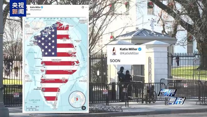 1月3日,美军突袭委内瑞拉当天,白宫办公厅副主任斯蒂芬·米勒的妻子凯蒂·米勒,在社交媒体发布了一则帖文:一张被涂上美国国... 1月3日,美军突袭委内瑞拉当天,白宫办公厅副主任斯蒂芬·米勒的妻子凯蒂·米勒,在社交媒体发布了一则帖文:一张被涂上美国国旗颜色的格陵兰岛地图,配文是大写的英文单词“很快”。