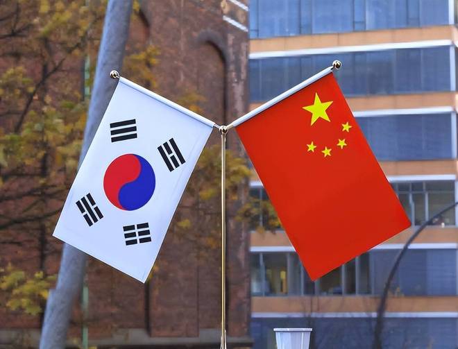图为中国和韩国国旗(资料图)
