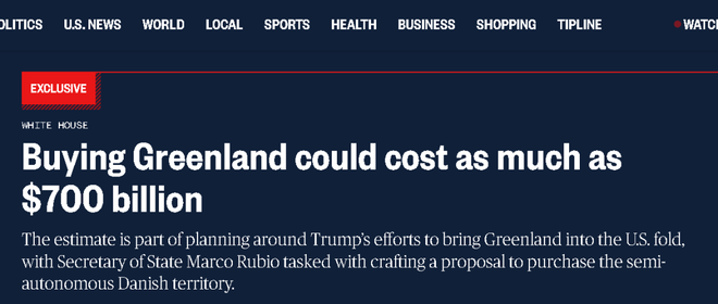 然而,有估算显示,美国或得准备7000亿美元,才能买下这座岛。
