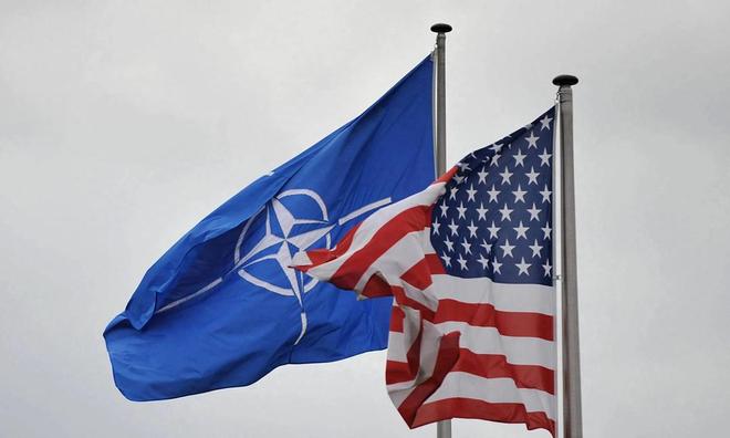 图为北约旗帜和美国国旗(资料图)