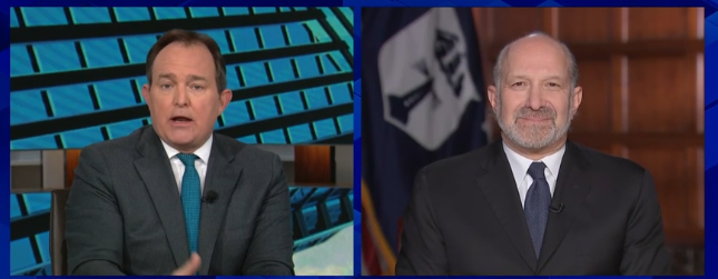 美国商务部长卢特尼克(右)接受CNBC采访(视频截图)