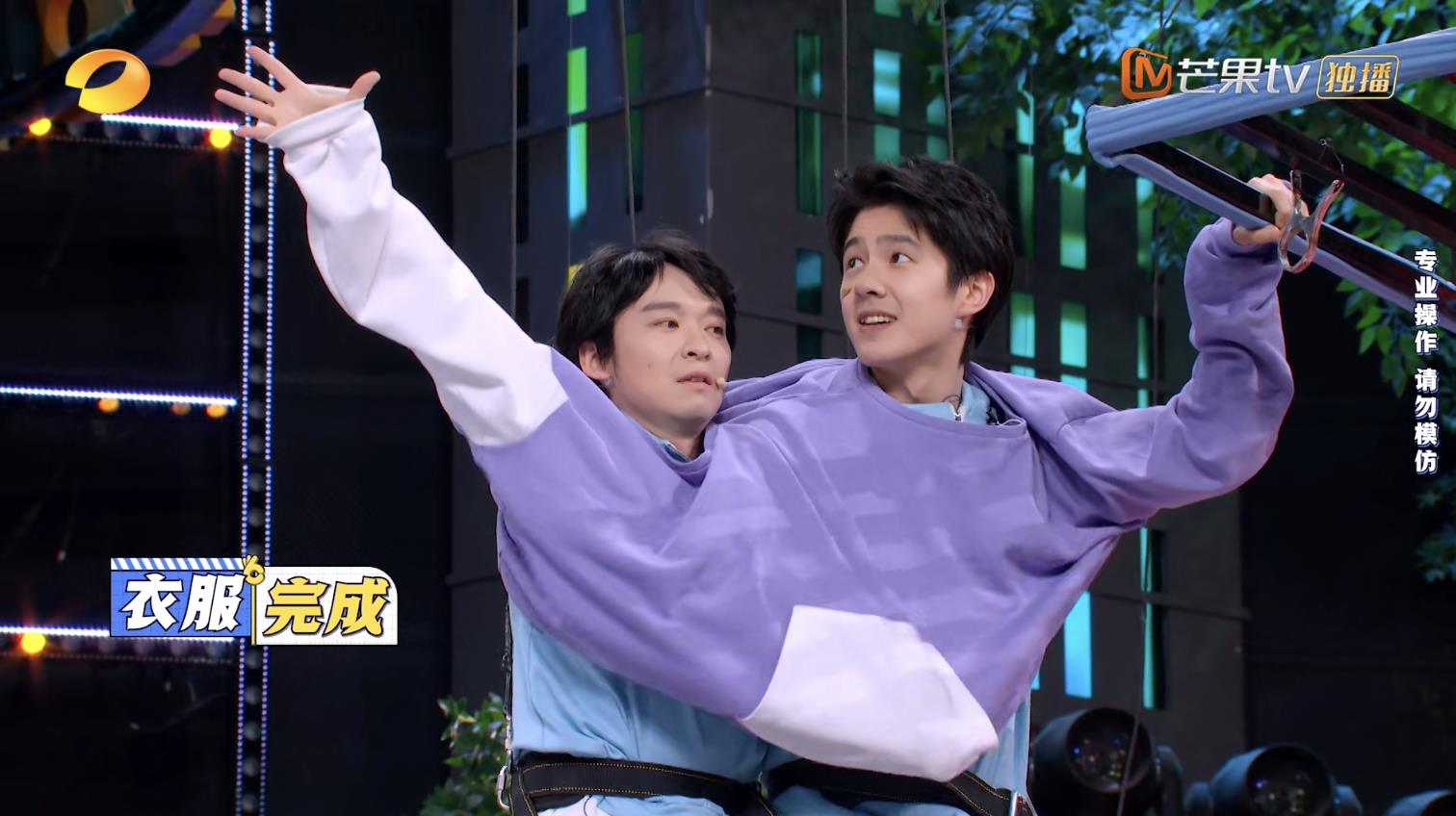 在经历了一系列的创意脑洞、默契度等考验之后,最后迎来了和朋友的合作能力考验,两人站上高台,需要在高空中配合穿上连体衣或者合力挤破气球,在高台之上,大家都紧握住彼此的手,齐心协力完成挑战,展现了朋友之间共渡难关的深厚情谊,满分友情在这一刻真的具象化了!
