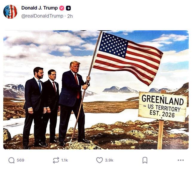 尽管特朗普没有对法国和北约领导人的短信发表具体的评论,但他20日在“真相社交”上发布了多张暗示“吞并”格陵兰岛的图片。