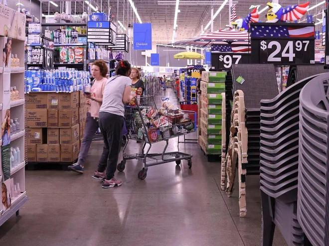 2025年5月20日,顾客在美国加利福尼亚州洛杉矶县一家沃尔玛商店内采购商品 新华社发(邱晨摄)