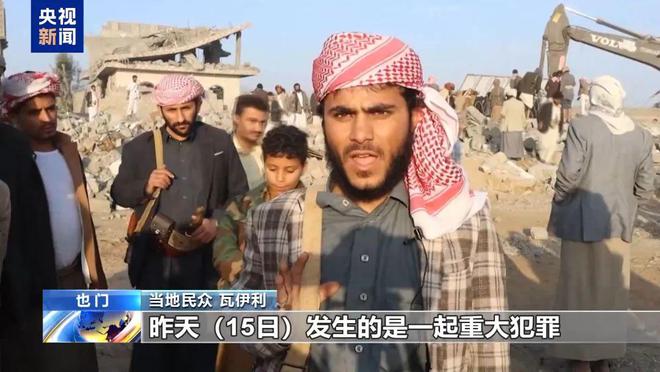 当地民众 瓦伊利:15日发生的是一起重大犯罪,是针对也门民众的最大犯罪,造成包括儿童在内的许多人死伤,现在还有一名男孩和一名女孩仍被埋在废墟下。美国只针对与任何事情都无关的平民,但我们已经准备好了。