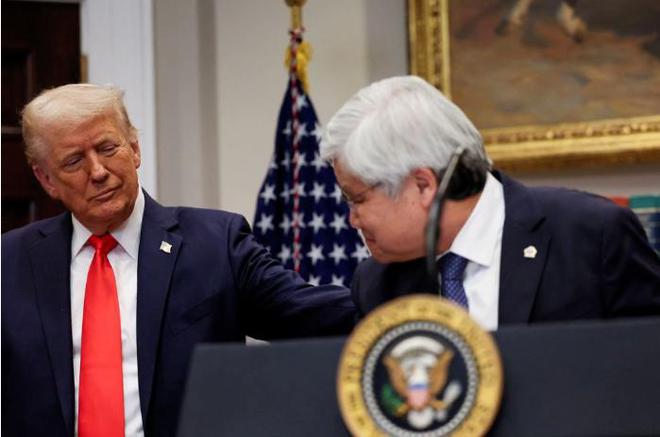 特朗普和台积电董事长魏哲家 资料图 财联社3月17日电,据台湾联合新闻网3月17日报道,美国总统特朗普近日受访再度提到台... 特朗普和台积电董事长魏哲家 资料图