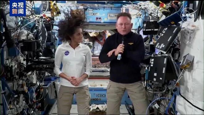 威尔莫尔(右)和威廉姆斯(左)在空间站接受采访