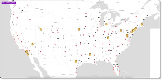 据《纽约邮报》18日报道,一个名为“DOGEQUEST”的网站泄露了全美特斯拉车主的身份、地址和电话号码。网站页面使用燃烧瓶作为光标,交互式地图上标出了已知的特斯拉经销店、充电站和政府效率部雇员住所的位置。