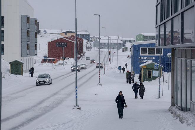 ▲3月14日,格陵兰岛努克居民沿街而行。图据视觉中国
