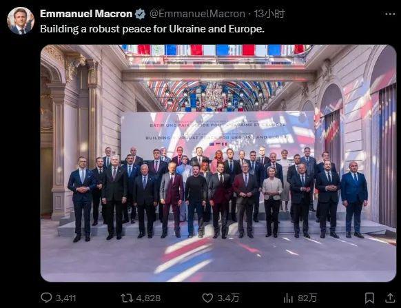 泽连斯基和马克龙在巴黎峰会发表讲话 社交媒体