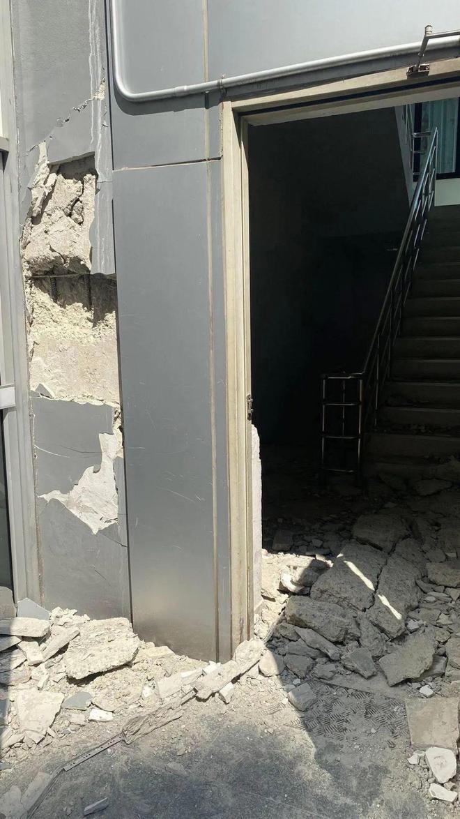 曼谷某儿童医院应急出口墙体断裂,地上有大块碎石 受访者供图