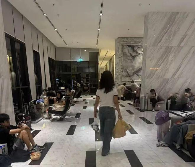 曼谷某高层公寓人员在一楼避险 受访者供图